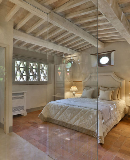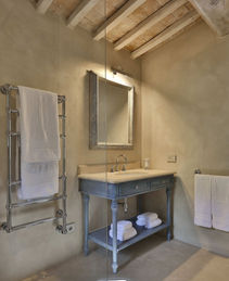 On the ground floor of the villa, you will find a spacious living room, a dining room which includes a perfectly preserved kitchen dating back to the 4th century A.D., and a well-equipped modern kitchen. There is also a bathroom (with laundry facilities) and a bedroom suite (with double bed) with ensuite bathroom (with travertine shower).