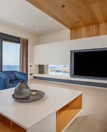 - One double bedroom with access to a private terrace (with king-size bed, with air conditioning, TV, hairdryer, safe, sea view) with