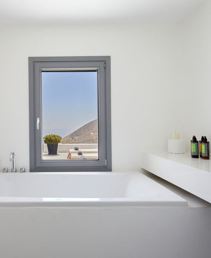 Located close to Pyrgos village on the west coast of Santorini, Villa GRI035 is a lovely modern villa with a private swimming pool and outdoor jacuzzi. The villa is within walking distance of restaurants and a short drive from the nearest beach, making it the perfect retreat for couples looking to enjoy and explore Santorini. During your stay, you will have access to a free small manual car, free airport transfers, complimentary breakfast, concierge services, free laundry services, and a daily maid service.