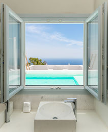 One of four villas set on a terraced estate, Villa GRI041 is a luxury modern villa with stunning views of the sea and a private swimming pool. The villa is perfect for couples seeking a peaceful retreat in Santorini. Located in the Kallistis area, it is only a few minutes from Pyrgos village and Perivolos beach, as well as Fira (7km), the island's capital, which has numerous shops, bars, and restaurants.