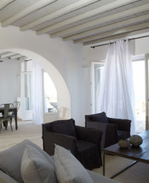 Villa GRM060 is located near Fanari, the highest area of the island and offers a stunning view on the Aegean Sea and the town of Mykonos. Despite it is part of a 3 villa complex (together with Villa Eunike and Villa Kassiopeia ), you can enjoy private moments sheltered from indiscrete eyes.