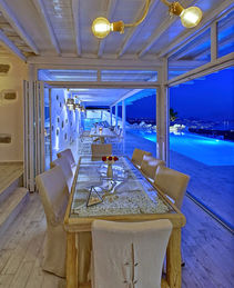 Part of a three-villa complex located in the Kastro area of Mykonos, Villa GRM094 is a luxury villa with a swimming pool and panoramic views of the Aegean Sea. An excellent destination for holidays with family or friends - you can escape the crowds while still being within easy reach of Mykonos Town (8.3 km) and some of the island’s most beautiful beaches. Guests have access to a fully equipped gym, tennis court and helipad on the complex, and a concierge is on hand 24/7, as well as professional security guarding the complex at night.